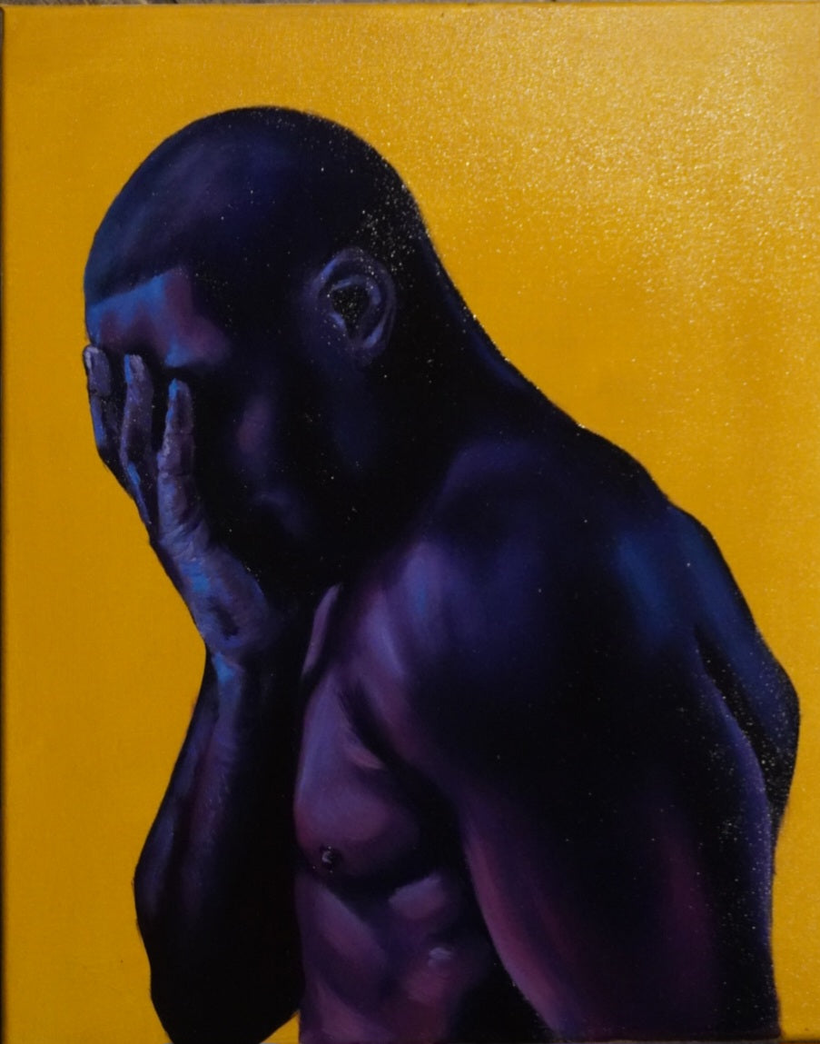 16x20 oil on canvas. He deserves grace. Giving his best, though his soul is tired. He will still show up strong. His breakthrough is coming. Deep emotion, coupled with his smoothly blended hue, capturing the duality of being a Black man. Purple represents luxury, power, and ambition. Blue represents sensitivity, freedom, and faith. Undoubtedly, he’s royalty.